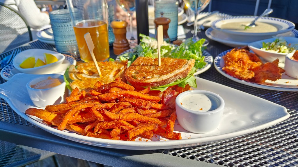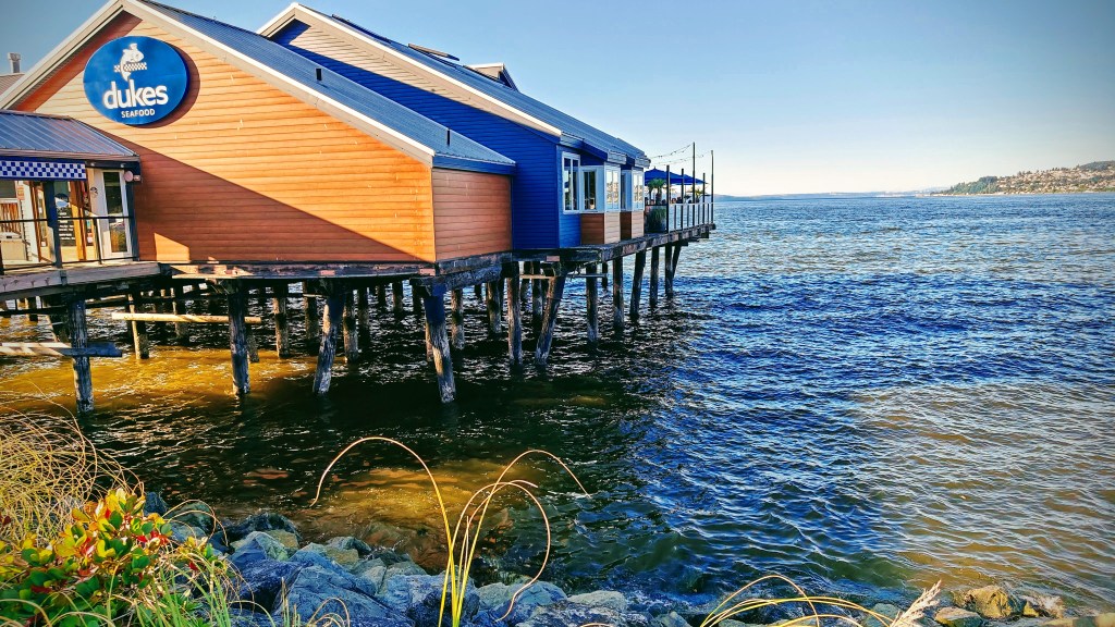 The next day, I celebrated my belated birthday with my dad and stepmom, Leslie. It was just the three of us, and I got to choose the place, I picked Duke’s Seafood House on the Ruston Way Waterfront. By some stroke of luck, we landed seats on the deck, looking right out over the Puget Sound on a glorious sunny late afternoon.