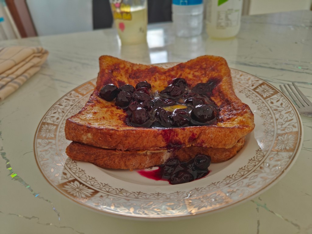 French toast with blueberry compote — a breakfast she’d never had before.