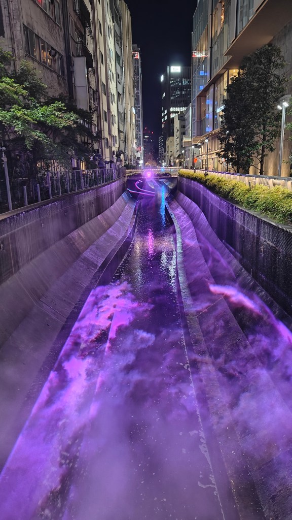 As we walked back from dinner — through neon-lit streets, over small water canals glowing with purple lights, surrounded by a tide of late-night pedestrians — I found myself thinking: