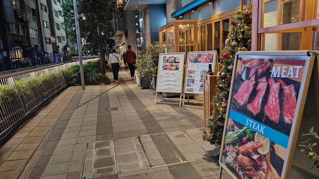 We were exhausted — especially Sydnee and Zavion after nearly 24 hours awake — but hunger beat exhaustion. After checking into the hotel in Shibuya, we stepped back out into a sea of neon lights, crosswalks, and restaurants on every corner.